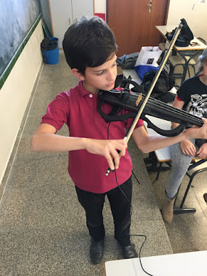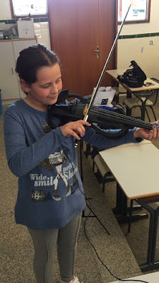 Hace unas semanas nuestros alumnos de Violín Colectivo de Grado Elemental se lo pasaron en grande conociendo,probando, trasteando y tocando con un violín eléctrico que trajo su profesora Leticia. Seguro que a partir de ahora ven su instrumento con otros ojos.