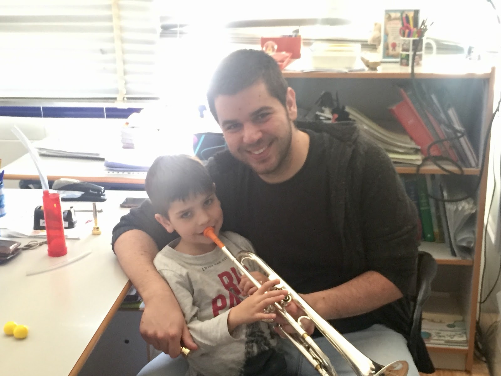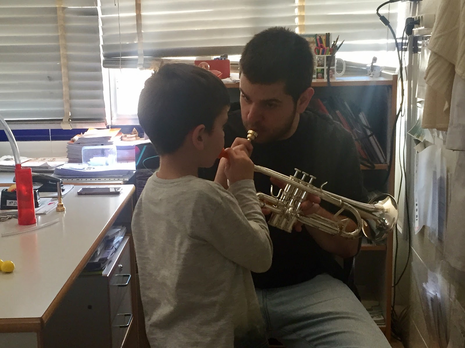 Aquí os mostramos a nuestro alumno Felipe que a su corta edad ya ha iniciado sus clases de trompeta con su profesor Joaquín. En breve os mostraremos todo lo que ha avanzado en apenas un mes de clases.